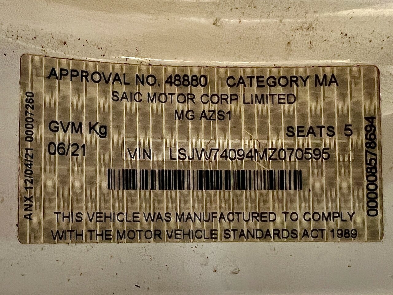 2020 MG ZS EV AZS1 MY21