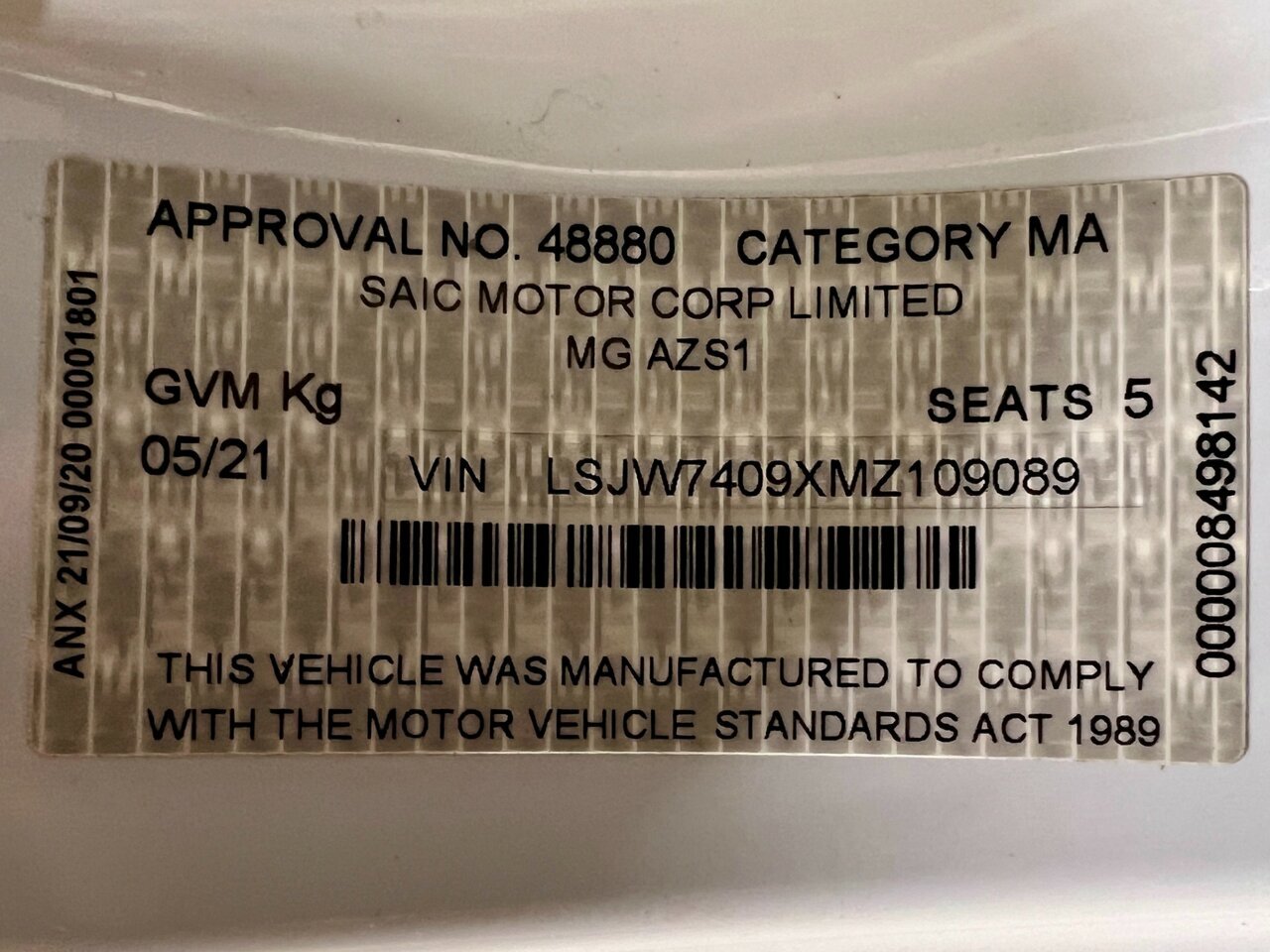 2021 MG ZS EV AZS1 MY21